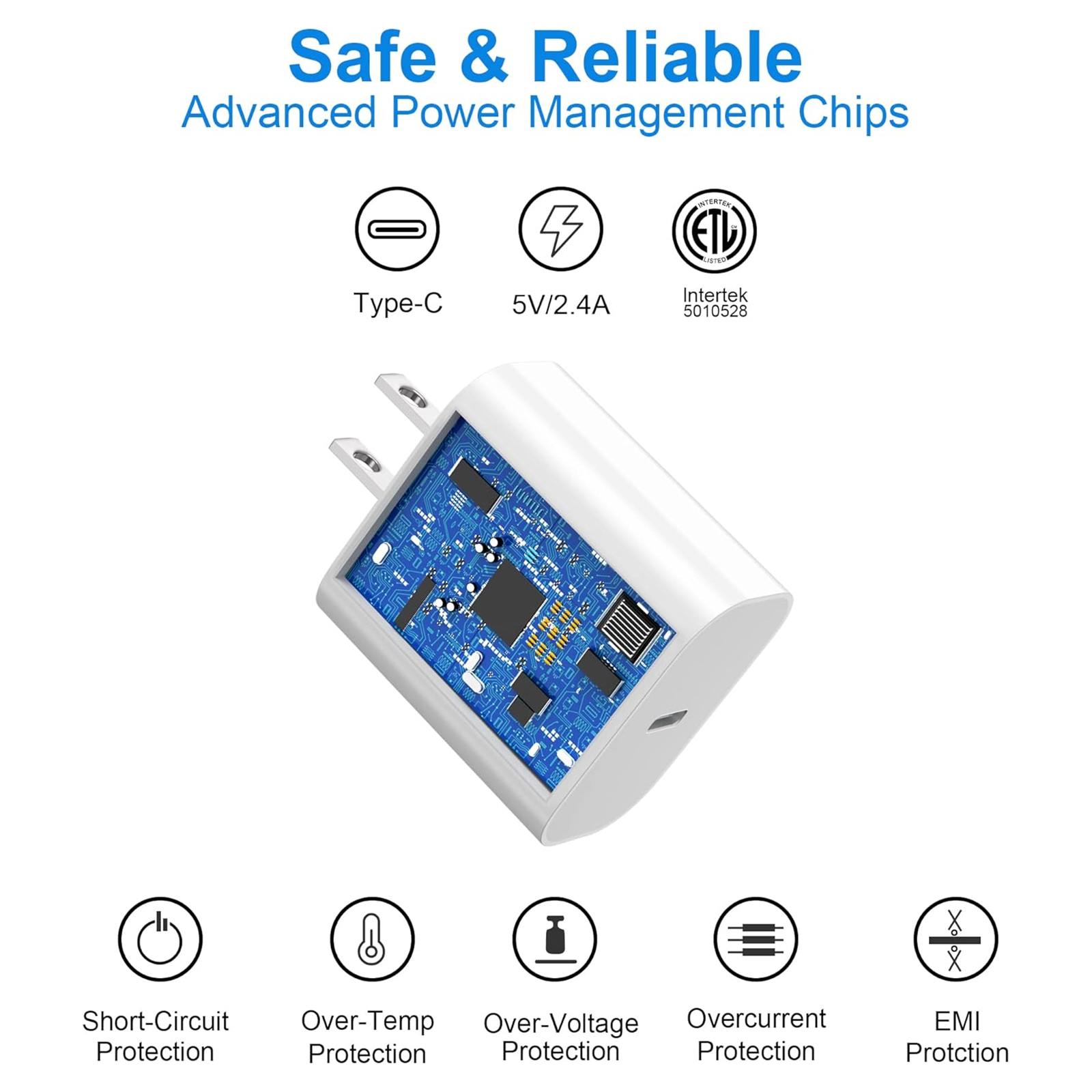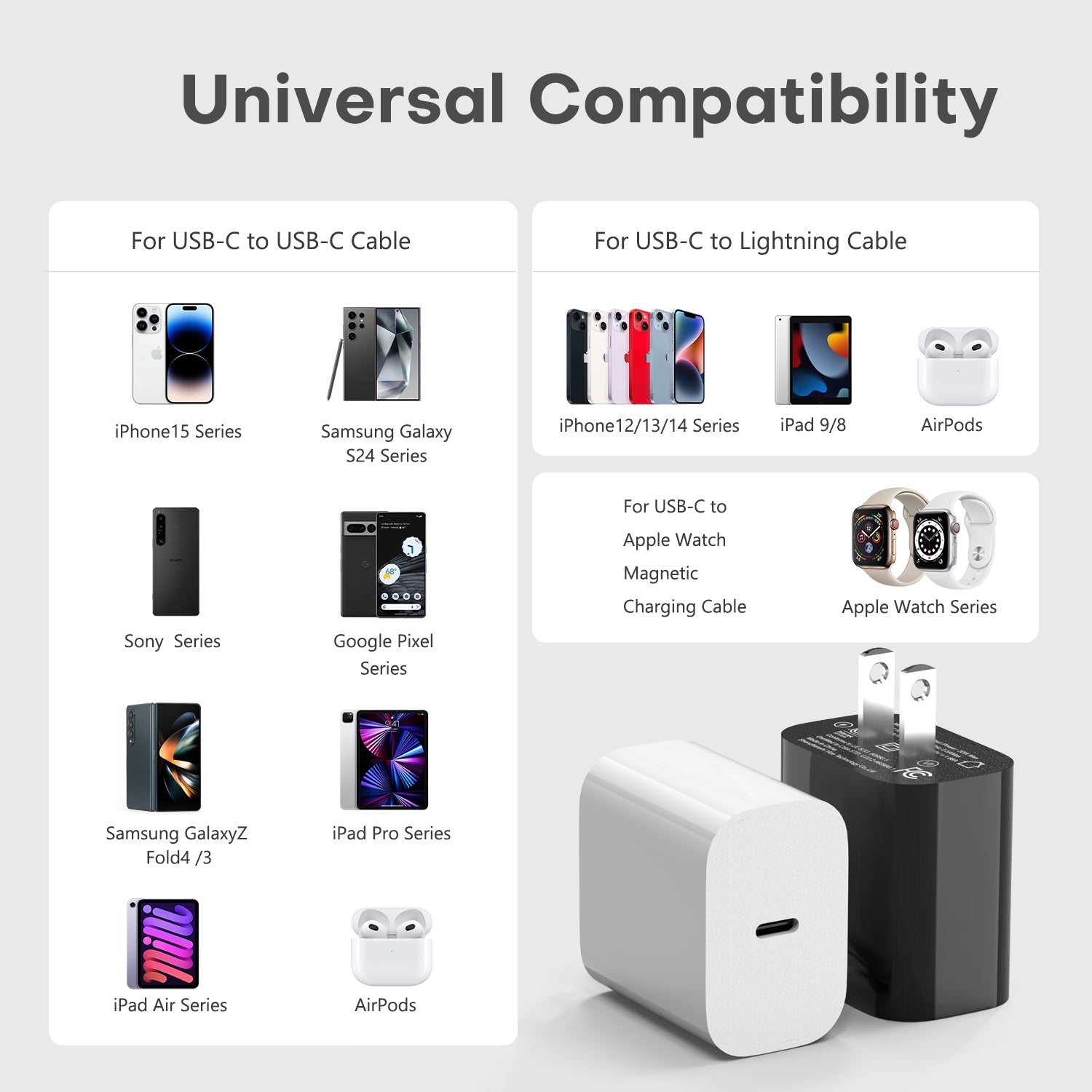 20W USB-C PD GaN Fast Chargers with Charge Cable, Compact Type-C Wall Adapters for Phones and Small Devices