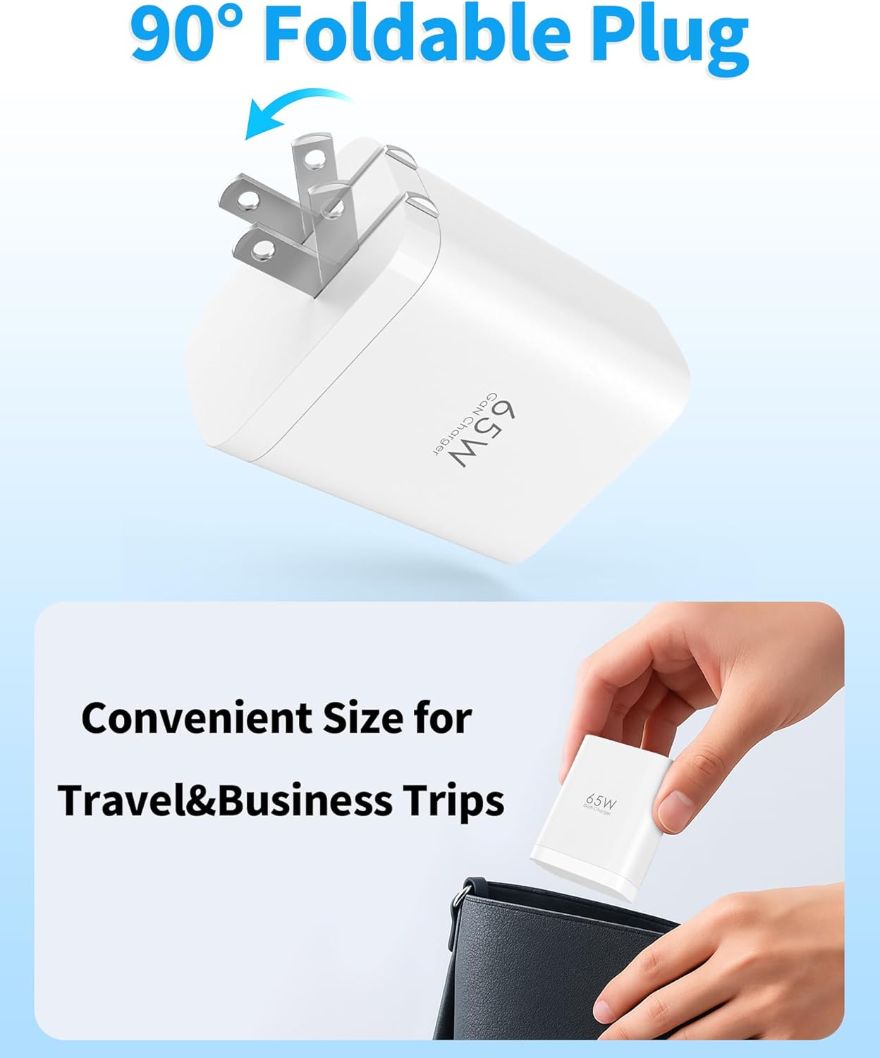 Retractable Wall Charger, 65w PD USB C Fast Charger Block with Foldable Plug Portable Adapter for MacBook Pro/Air, ipad Pro/Air, iPhone 15/16 Pro/Pro Max, for Galaxy S24/S23, (White)